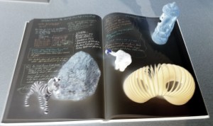 ~The open book and everything on it are all reverse images created in Picasa when I was playing around today. That’s why the paper is black, and the monkey is white.