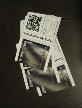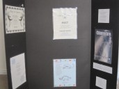 On my table, I set up a tri-fold board with a sign identifying me as a poet, as well as Chiaroscuro book cover and some sample poems, a few poems for kids, and my certificate for first place poetry from a local contest. For handouts, I had my Stego Stomp poem printed on fun paper for the kids, and postcards about Chiaroscuro for the parents.