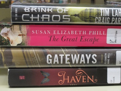 Doing the book spine poem at the library also had another benefit. See that bottom book? I grabbed it solely for the title. I glanced at the front cover blurb due to the butterfly. Went on instinct, and checked out the book. Read it in two days. LOVE. The book is HAVEN by Kristi Cook. It’s a YA about a girl with precognition, who transfers to a school where everyone has some sort of psychic ability. In the author’s own words: Think X-Men meets Twilight. Loved the characters, the fresh spin on the plot. Could not put the book down. Immediately checked out book two, MIRAGE. Now eagerly waiting for book three to come out (this fall!).